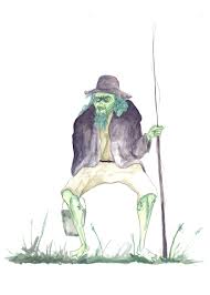 Da saß eine Gestalt, mit dem Rücken zu mir und starrte auf den See. Im Schein der letzten Sonnenstrahlen, die sich im Nebel brachen konnte ich eine Angel erkennen. Trotz der gekrümmten Haltung glaubte ich erkennen zu können, dass es sich um einen alten Mann handelte. Er wirkte wie einer der toten Sträucher, die das Ufer säumten, denn seine Angel streckte sich einem Ast gleich in den Nebel. Ich nahm allen Mut zusammen und rief ihm zu: „Beißen die Fische gut an?“ Da drehte der alte Mann sich um. Dabei wirkte er so steif wie ein Baumstumpf. Erst als sich bei seiner Bewegung etwas auf seinem Kopf bewegte nahm ich den kreisrunden Hut war, den er trug. Langsam hob er den Kopf und lächelte mich an. In seinem grünlich scheinenden Gesicht, das von einem an Algen errinernden B. hHn art umrahmt wurde, nahm ich spitze Zähne war, als er mich angrinste. Sie errinnerten mich unangenehm an Reißzähne. Unvermittelt setzter er zum Sprechen an. „Wenns regnet hab ich gute Zeit“. Seine Stimme klang seltsam. Beinahe wie Entenschnattern. „Sieht so aus“ sage ich vorsichtig uns linste in den Eimer nebem dem alten Mann. Dort sah ich zappelnd einige Aale, zwei Karpfen und…eine Natter? Erschrocken wich ich einen Schritt zurück. „Sowas…ist aber schwer zu fangen oder?“ stammle ich mit blick auf die Natter. Mit einem mal sprang der Alte man hoch und landete neben mir. „Die Knorpel sind so gut zu kauen“ flüsterte er mir mit seinem wiederlichen Dialekt ins Ohr. „Er sei jetzt heut Nacht mein Gast. Wo will er heute auch noch hin. Nur zu, den Bottich angefasst, genug ist für uns beide drin“. Und mit diesen Worten hüpfte er förmlich auf seinen gekrümmten Beinen am Ufer entlang, wärend ich wie in Trance den Eimer hinterher schleppte. Hinter ihm kroch ich förmlich zwischen einigen Büschen hindurch bis ich eine kaum sichtbare Hütte aus Schilf vor mir entdeckte. Als ich hineinging sah ich trotz des Dämmerlichts das es weder einen Stuhl noch einen Tisch gab. Der alte Mann ließ sich vor mir auf dem Boden nieder. Es roch nach Aas und verrottetem Fisch. Mir wurde so übel, dass mir jeglicher Appetit verging. Der Alte aber greift in die Eimer, packt die Fische an der Schwanzflosse und beißt ihnen den Kopf ab. Mit genussvollem Schmatzen und knirschen presste er hervor „Ihr esst ja nichts, ah, das ist nicht recht“. Seine mit Schwimmhäuten besetzte Hand klatscht laut auf mein Bein. „ihr seid vom trockenen Geschlecht, ich weiß. Die Kerle essen nie. Ihr seid bekümmert, sprecht doch aus, womit ich euch erfreuen kann“. Ich zitterte am ganzen Körper. Erst jetzt begriff ich was gerade hier passiert. Auch der Stress der letzten Stunden fordert seinen Tribut. Meine Antwort schrie ich ihm fast ins Gesicht. „Ich will hier raus, aus diesem verfluchten Wald, diesem ‚Schnatermann'“. Da fängt er plötzlich an leise zu lachen. Es steigerte sich immer weiter und ich wurde immer ängstlicher. Der Alte baute sich über mir auf. „Was wisst denn ihr vom Schnatermann?“. Ich sinke in mich zusammen. „Naja…so…so heißt der Wald“ flüstere ich leise. „So heißt der Wald? Nun geht es los…“ er grinste mich mit einer warhaft dämonsichen Fratze an. “ Du dürrer Narr. Was weißt du bloß? Vom Schnater- Schnater- Schnatermann?“. Als er sich auf mich stürzen wollte wich ich zurück und rollte mich aus dem Bau. Ich lief so schnell wie ich noch nie gelaufen war. Der Matsch unter meinen Füßen spritzte auf, der Regen peitschte mir ins Gesicht und auch als ich einen Schuh verlor lief ich weiter. Überall um mich herrum höhrte ich Schnattern. Von Enten, Unken, Fröschen. Von irgentwo her tönte ein irres Lachen, und der Wind trug mit seinem hohlen Stöhen zu dieser Symphonie des Grauens bei.