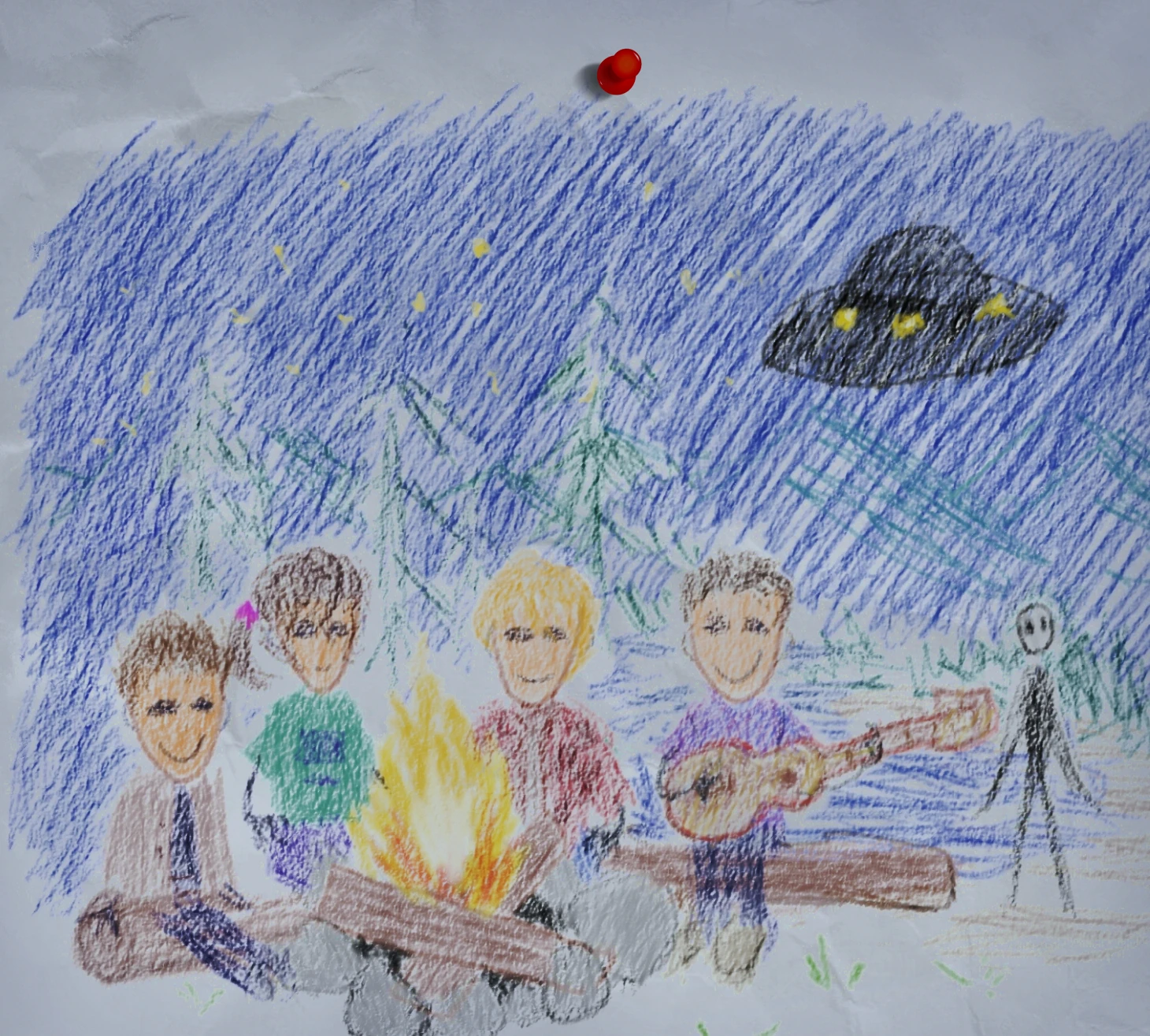 Wo sie die Campingzelte nun aufgeschlagen hatten und wo nun ein Feuer vor sich hin knistert, ist ein idyllisches Plätzchen am Fjorde, mit Bergerhebungen im Horizont und einem Nadelwald, dessen Nadelduft bis vorhin noch in ihre Nasen zog, als dieser sich noch nicht zu Feuerglut und Rauch wandelte. Nachdem sie den Tag am See mit Angeln verbracht hatten, damit das Lager aufzubauen und die gefangenen Fische zu verzehren, nachdem sie sie gegrillt hatten, war es inzwischen Nacht geworden. Der Abend war mit Gelächter, Herumalbern und Gesang durchzogen. Das Glitzern leerer Bierflaschen verlieh der Feuerstelle eine gewisse Signatur, die die ausgelassene Stimmung nur deutlich unterstrich.