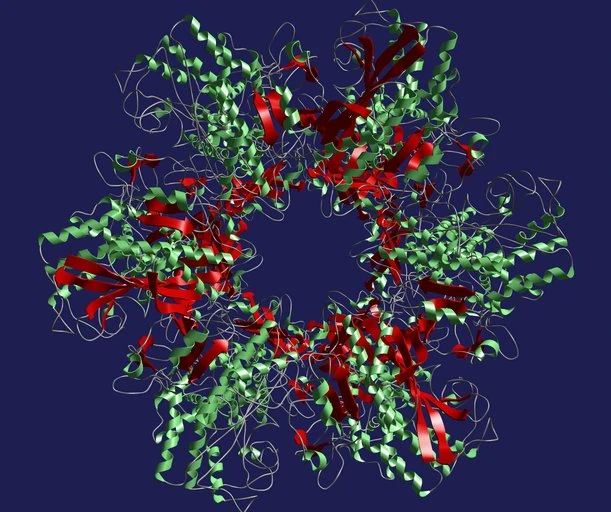 Banddiagramm zeichnet die tertiäre Struktur von SCP-008 auf. Ursprüngliche Informationen über die Aminosäurensequenzen wurden gelöscht.